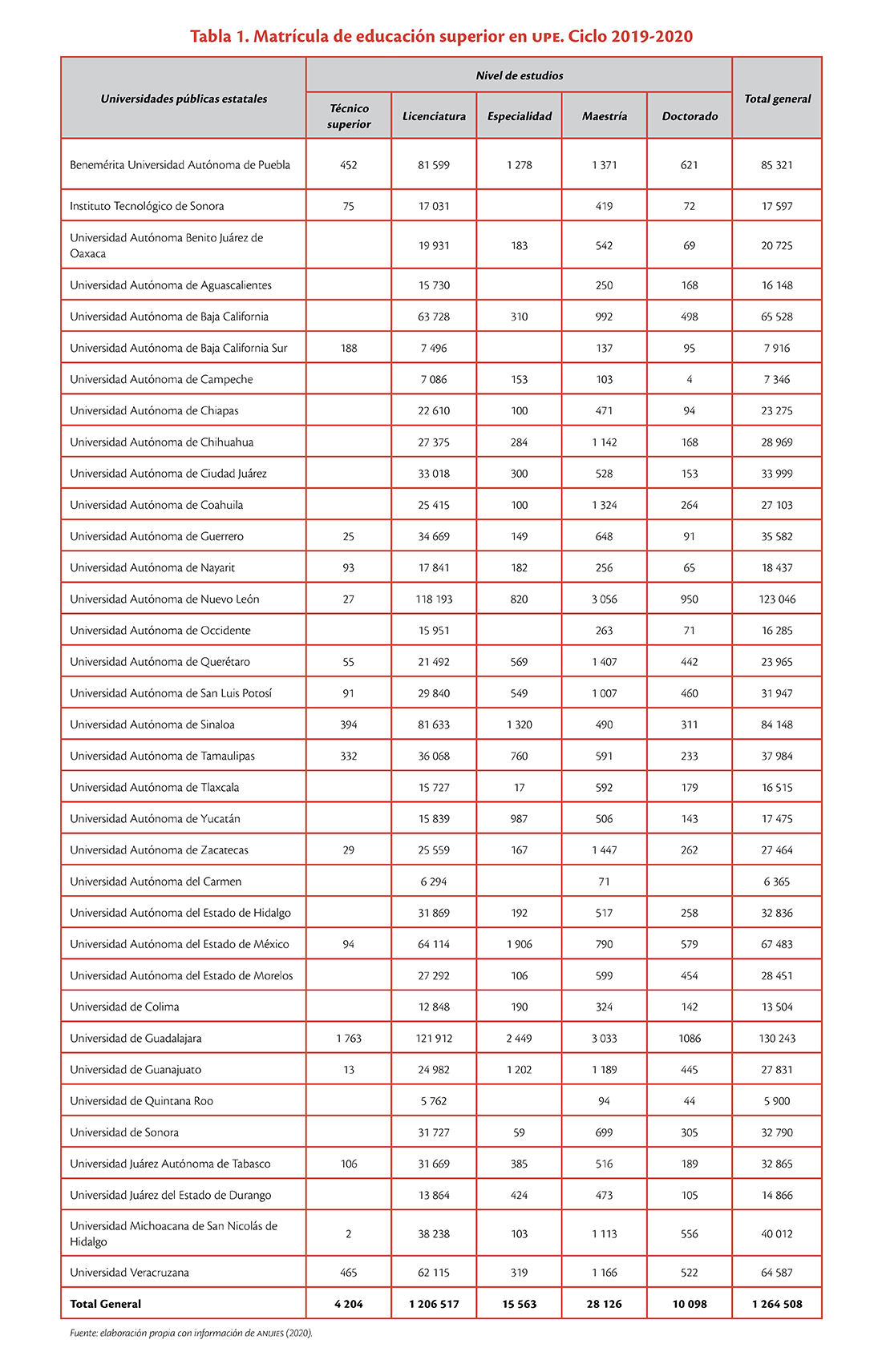 Asociación Nacional de Universidades e Institutos de Educación Superior (ANUIES) (2020), Anuario estadístico de la educación superior. 2019-2020, México, ANUIES, http://www.anuies.mx/informacion-y-servicios/informacion-estadistica-de-educacion-superior/anuario-estadistico-de-educacion-superior .